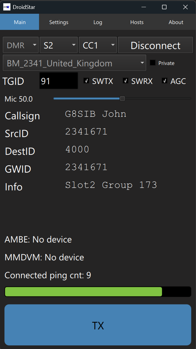That's it! Click/tap Connect and after a few seconds DroidStar will connect to the BrandMeister network.